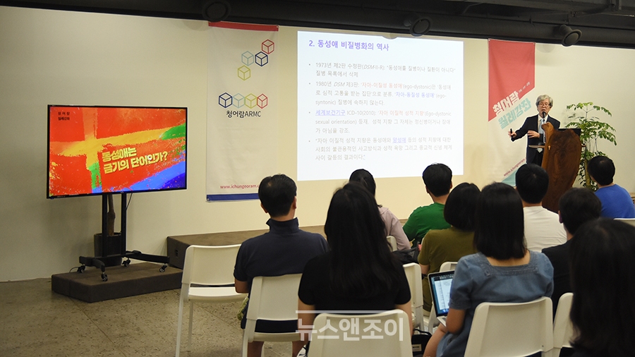 1시간의 강의가 끝나고 참석자 40여 명이 30개 가까운 질문을 쏟아 냈다. 동성애와 관련한 목회·신학·사회적 질문들이었다. 양희송 대표가 질문들을 간추려 허호익 교수와 대담 형식으로 풀어 갔다.