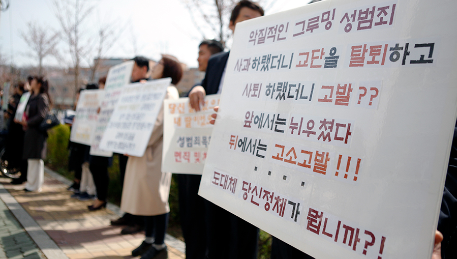 피해자 측 교인들은 김영남 목사가 아들 목사의 성범죄 의혹을 제대로 수습하지 않고 갈등과 분열을 조장하고 있다고 주장해 왔다. 이들은 올해 4월부터 별도로 예배하며 매주 교회 앞에서 김영남 목사의 사퇴를 촉구하는 피켓 시위를 벌였다.