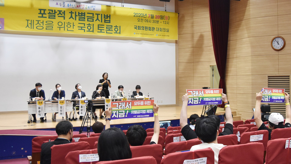 [뉴스앤조이-이은혜 기자] 숙명여대 홍성수 교수(법학과)가 7월 20일 국회의원회관 대회의실에서 열린 '포괄적 차별금지법 제정을 위한 토론회'에서 말했다. 이미 다양한 사유·영역을 커버하는 개별적 차별금지법이 있으니 포괄적 차별금지법은 없어도 되지 않느냐는 물음에 답한 것이다.