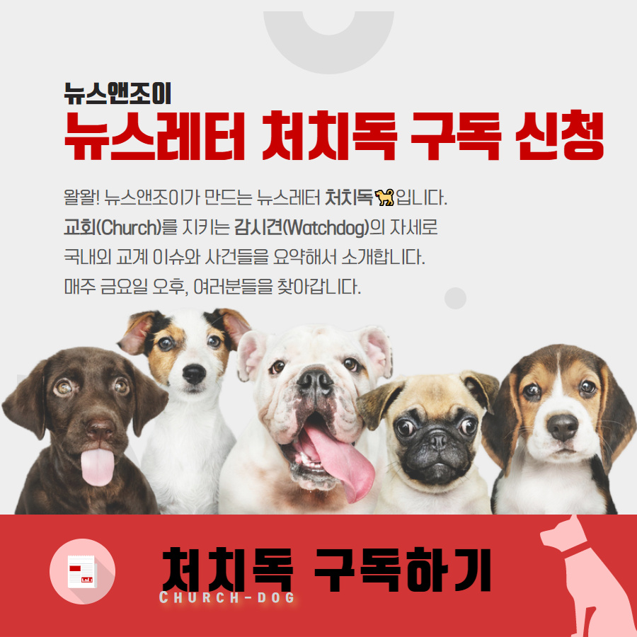 [뉴스앤조이-박요셉 간사] <뉴스앤조이>가 한동안 중단했던 뉴스레터 서비스를 리뉴얼합니다. 이름도 지었습니다. '처치독(Church Dog)'. 매주 금요일 오후 독자 여러분을 찾아갑니다.