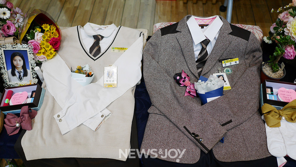 2017년 9월 23일. 참사 후 네 번째 여름이 지나고, 비로소 다윤과 은화는 가족과 함께 목포신항을 떠나게 됐다. 지인·시민들과 더불어 서울시청 다목적실에 어여쁜 꽃들로 장례 예식단을 꾸미고 24일 은화·다윤, 다윤·은화와의 이별 예배를 드렸다. 몸으로 만나지 못한 딸들을 보내며 차마 '장례'라고 이름할 수 없었던 부모들의 마음을 담아 '이별식'으로 진행됐다. 25일 아침 서울시청을 떠난 딸들은 단원고 교정, 연화장을 거쳐 엄마들의 오열 속에 경기 화성 효원납골공원에 안장됐다.