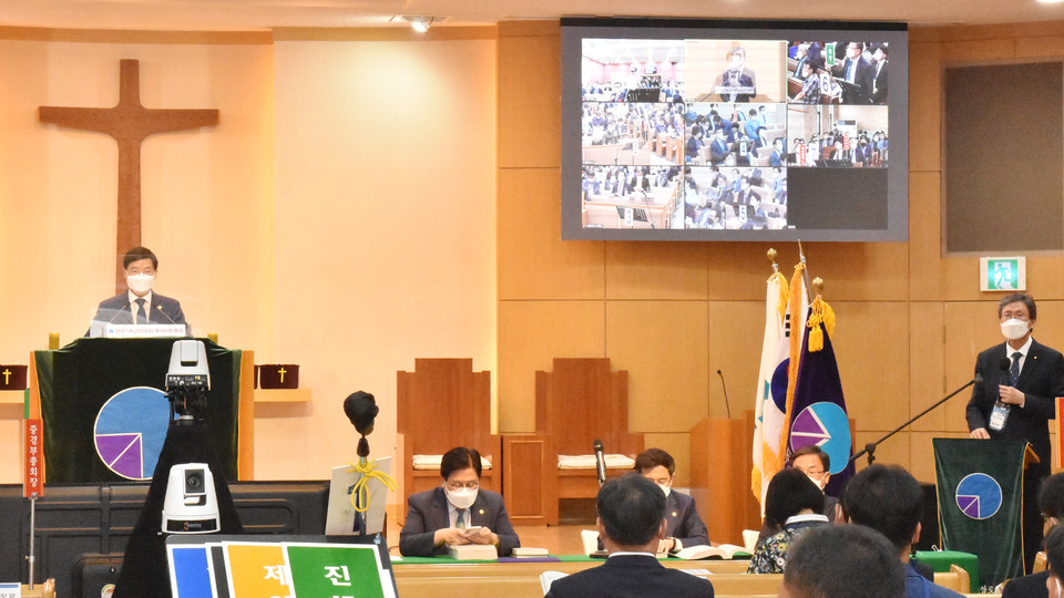 [뉴스앤조이-이은혜 기자] 한국기독교장로회(기장·이건희 총회장)가 9월 28일 청주제일교회·우암교회·성동교회·청주동부교회에서 온·오프라인 병행으로 106회 총회를 열었다. 기장은 네 개 교회에 총대를 지역별로 분산 수용하고, 각 교회를 온라인으로 연결해 회무를 진행한다. 기장은 주로 하루 일정으로 진행하기로 결정된 다른 교단 총회와 다르게 28일 오후 2시부터 29일 오후 5시까지 이틀간 총회를 이어 갈 예정이다.