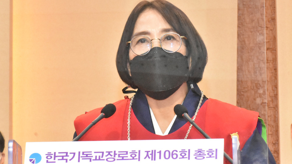 [뉴스앤조이-이은혜 기자] 국내 주요 장로교단 최초로 여성 목사가 총회장에 취임했다. 한국기독교장로회(기장) 총대들은 9월 28일 열린 106회 총회에서 김은경 목사부총회장(익산중앙교회)을 박수로 총회장에 추대했다.