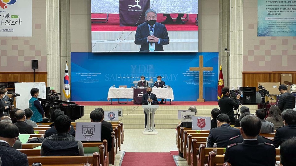 [뉴스앤조이-최승현 기자] '노태우 전 대통령 국가장 참석'으로 논란을 빚은 한국기독교교회협의회(교회협) 이홍정 총무가 무기명투표까지 간 끝에 연임에 성공했다. 교회협은 11월 22일 오후 서울 문래동 구세군영등포교회에서 제70회 정기총회를 열고, 신임 장만희 회장(구세군) 취임 및 이홍정 총무 선임 등 주요 안건을 의결했다.