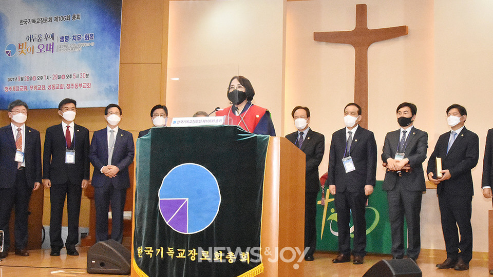 총회장에 당선됐을 때 굉장히 기뻐하고 즐거워하던 여성들의 모습이 기억에 남아요. 여신도회·여장로회·여교역자회에서는 전적인 응원과 격려, 지지를 보내 주셨죠. 사실 저는 총회장이 되면서 큰 변화를 꿈꾸지는 않았거든요. 이미 조직화되고 체계화된 구조를 한 사람이 변화시킨다는 것은 굉장히 어려운 일이라는 걸 우리 모두 너무 잘 알고 있잖아요. 특히 종교 계통에서요. 그래서 저의 역할을 고민하면서도 큰일을 해내기는 어려울 거라고도 생각했어요. 그런데 오히려 사람들은 일단 여성이 총회장이 됐다는 것, 더군다나 주요 교단 최초 여성 총회장이 됐다는 것만으로도 의미가 있다고 저를 격려했어요. "잘 감당할 수 있도록 기도하겠다", "잘할 것이다"라는 응원을 많이 해 주셨죠.