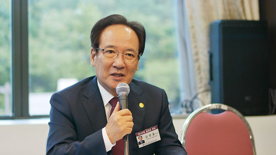 강연홍 총회장은 임기 1년 동안 많은 일을 할 수 없다는 사실을 인정하면서도 "107회기가 좀 더 멀리 내다볼 수 있는 초석을 까는 시기가 됐으면 좋겠다"고 말했다.
