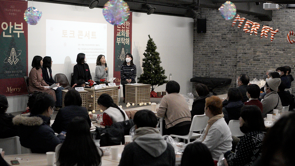 [뉴스앤조이-최승현 기자] 기독교반성폭력센터(기반센·공동대표 박유미·방인성)가 2022년 한 해를 마무리하며 '안부 - 안전한 교회를 부탁해'라는 주제로 후원의 밤을 열었다. 12월 20일 종로3가 청어람홀에서 열린 행사에는 100여 명이 참석해 공간을 가득 채웠다.
