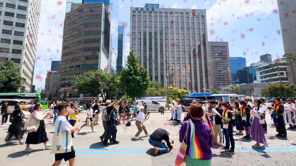 [뉴스앤조이-경소영 PD] 2024년 6월 1일 제25회 서울 퀴어 문화 축제가 열렸다. 축제가 막 시작된 오전 11시 무렵, 각종 무지개색 스톨을 두른 목회자들이 삼삼오오 모였다. 성소수자를 축복했다는 이유로 이동환 목사가 교단에서 출교된 지 불과 3개월 남짓 되었는데, 퀴어 문화 축제에서 축복식을 하겠다고 나선 목회자가 37명이나 됐다.