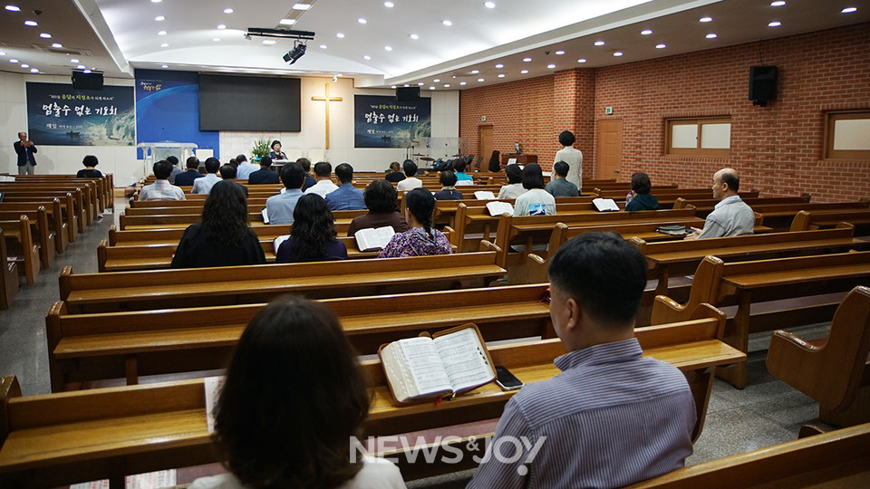 예배당을 나온 교인 40여 명은 감정을 추스르지 못한 채 한동안 로비에 머물렀다. 이들은 남은 예배 시간 동안 소예배실에서 따로 예배를 진행했다. 눈물을 흘리며 기도하는 교인들도 있었다. 기도를 맡은 한 교인은 "1년 넘는 기간 동안 기도하는 마음으로 이 사태가 조용하고 원만하게 해결되기를 바라며 지내 왔지만, 날이 지날수록 양쪽의 주장이 대립하고 수십 년 동안 교회를 섬겨 온 우리가 오히려 마귀, 사탄으로 내몰리고 있다"고 말했다.