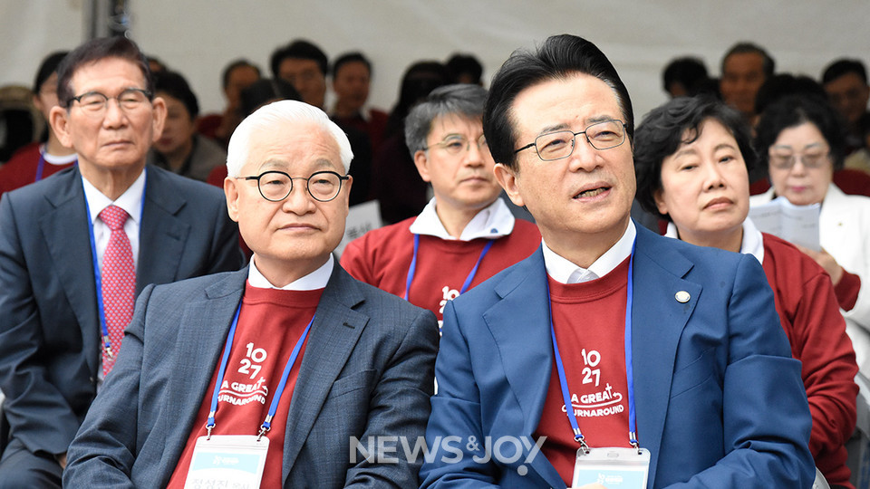 최승현 / 그때 사랑의교회 오정현 목사가 함께했고. 사실 오정현 목사가 유일하다고 생각해요. 그러니까 이름은 많이 올라갔는데 공동대회장에 정성진 목사도 있었고 자문위원이었나 고문이었나에 김장환 목사, 김삼환 목사 이런 분들이 있었는데 사실 뭐 명성교회도 교회 차원에서 동원된 건 아니었고요. 그날 추수감사절이었어요. 그래서 명성교회도 안 했고. 이영훈 목사도 공동 대회장이었는데 여의도순복음교회도 제가 기억하기로는 적극적으로 지원을 하지는 않았던 걸로 기억이 되고. 사실상 이제 손현보 목사가 부산 울산 경남에 있는 교인들을 다 버스로 실어 갖고 데리고 와서 집회를 한 걸로 저는 생각을 합니다. 어쨌든 이름들은 많이 올리셨던 건 사실이에요.