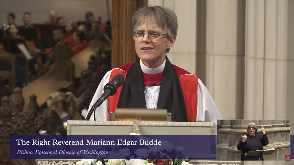 최승현 / 네. 지난주에 굉장히 화제가 됐었는데 미국 성공회 워싱턴D.C.교구에 있는 매리언 에드가 버드라는 주교가 설교를 했습니다. 미국은 전통적으로 대통령 취임하는 주간에 여러 가지 행사를 하는데 그 마지막이 성공회 국립대성당에서 국가 기도회를 하는 걸로 취임 행사를 마무리하는 그런 전통이 있다고 그래요.