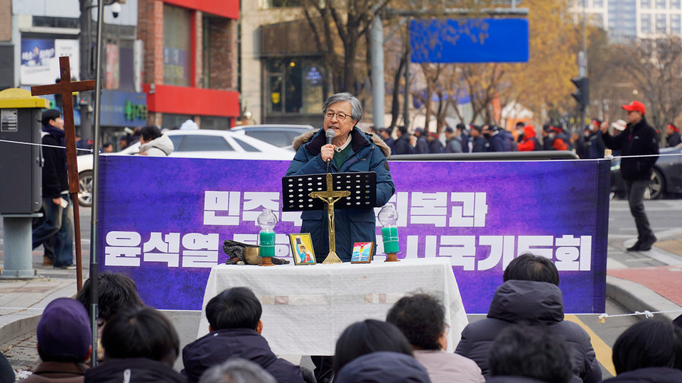 [뉴스앤조이-안디도 기자] 그리스도인들이 2월 15일 서울 종로구 영풍문고 인근에서 윤석열 퇴진과 민주주의 회복을 위한 6차 시국 기도회를 열었다. 기도회에 참석한 100여 명은, 비상계엄 옹호와 탄핵 반대에 앞장서고 있는 극우 개신교인들이 마음 돌리길 기도했고, 같은 그리스도인으로서 반성하고 회개했다.