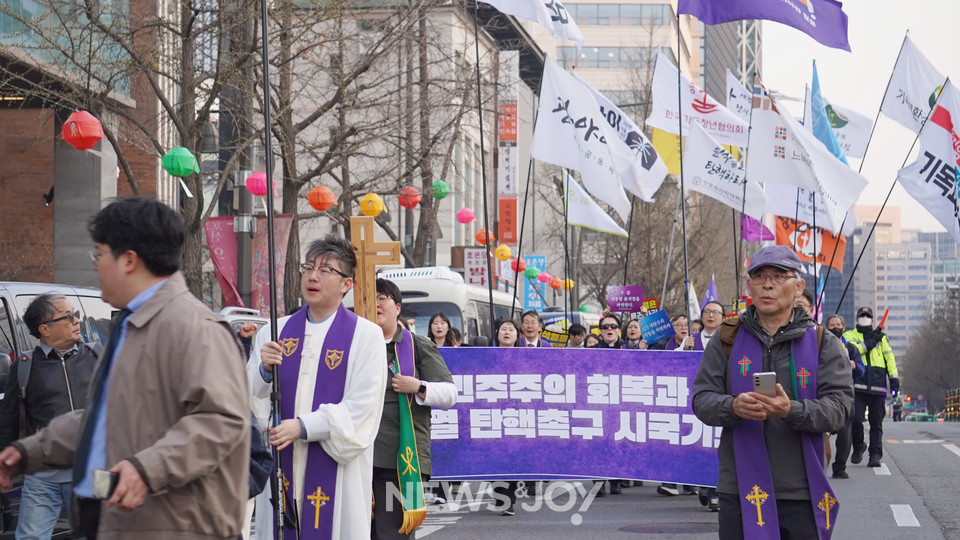 기도회에는 주요 교단 목회자·교인들과 교계 단체들이 대거 참석했다. 기도회가 끝난 후 참가자들은 각 단체의 깃발을 들고, 비상행동 집회가 진행되고 있는 안국역까지 행진하면서 윤석열 대통령 파면을 외쳤다. 지나가는 시민들도 함께 "윤 대통령을 파면하라"고 외치기도 했다.