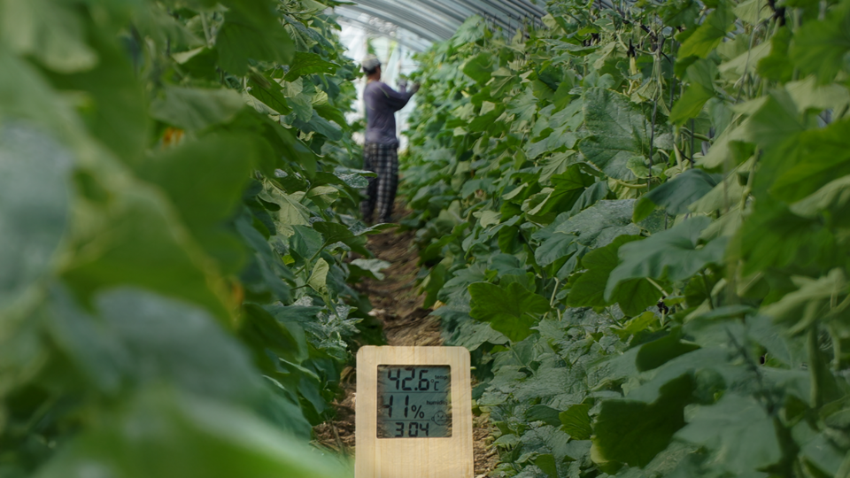 ◇ 엄태빈 / 제가 두 번 방문을 했는데 첫 번째로 간 날은 폭염주의보가 발효가 되긴 했는데 다른 날보다 조금 선선한 날이었어요. 비가 온 지 얼마 안 되고 나서였어 가지고 엄청 막 뜨거운 날씨는 아니었는데 그럼에도 불구하고 차에서 내리자마자 그냥 땀이 줄줄 나는 거예요. 취재하러 비닐하우스에 들어갔는데 진짜 들어가는 순간 그 안에 있던 뜨거운 기운이 확 몰려오는데 진짜 숨이 막히고 그 비닐하우스는 이제 햇빛이 전혀 막아 줄 수 있는 게 없어서 그대로 통과가 되는데 그냥 거기 비닐하우스 안에 서 있기만 해도 그냥 너무 어지러웠습니다.